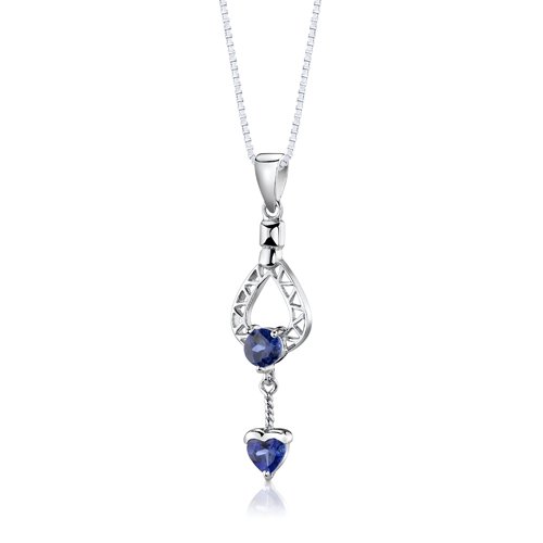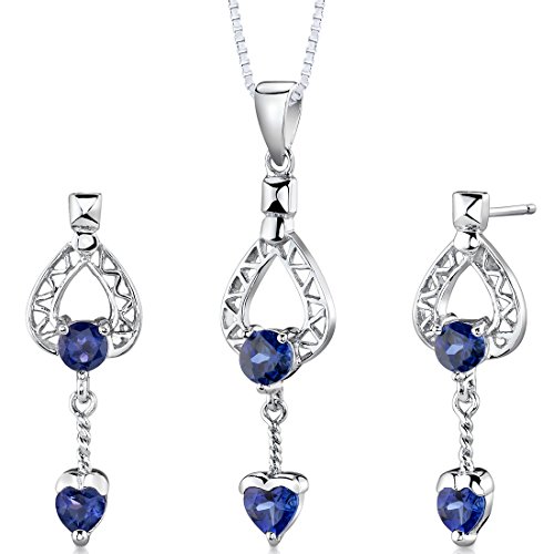 -. Title : Created Sapphire Pendant Earrings Necklace Sterling Silver Rhodium Nickel Finish Heart Cut 2.50 Carats