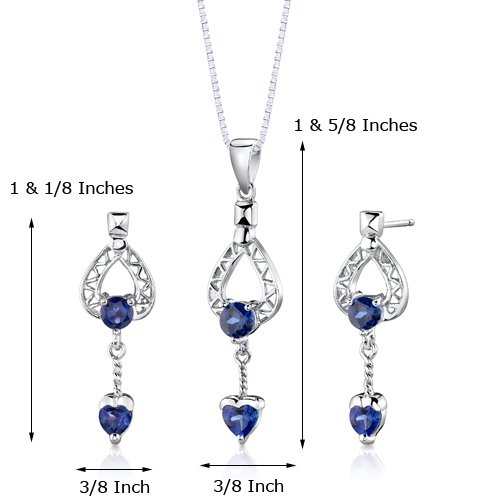 -. Feature : Created Blue Sapphire, Ceylon Blue Hue with Brilliant Sparkle / Pendant and Earrings are in .925 Sterling Silver and finished with Rhodium / Top Quality Craftsmanship / Exceptional Styling / 30 Day Return Policy