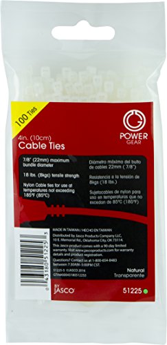 Power Gear 51225 Cable Ties, Plastic 4-inch Clear, 100-Pack