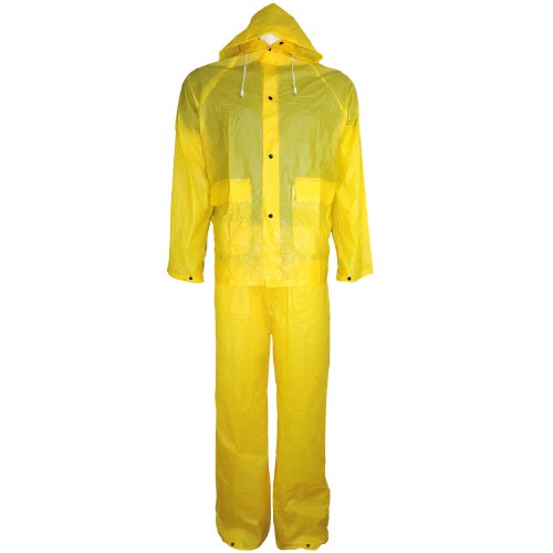Product Description Global Glove 3 Piece single ply PVC on polyester. Jacket with detachable hood and elastic waist pants. Made of 0.10 millimeters single ply PVC on polyester. Applications: protects against inclement weather. Water resistant backing. Economical. Size: extra large. 0
