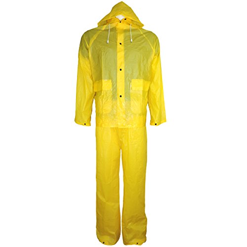 Global Glove RSP810 PVC/Polyester 1 Ply 3 Piece Rainsuit, Extra Large, Yellow (Case of 12)