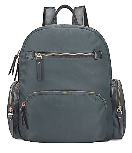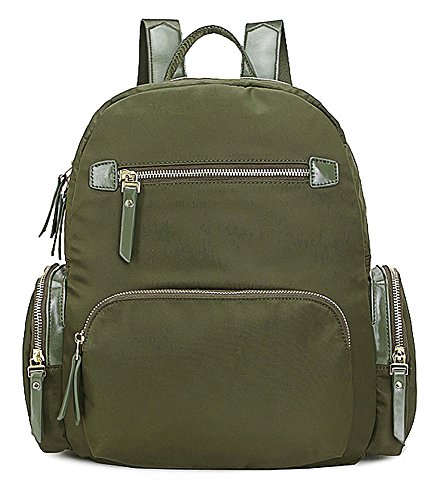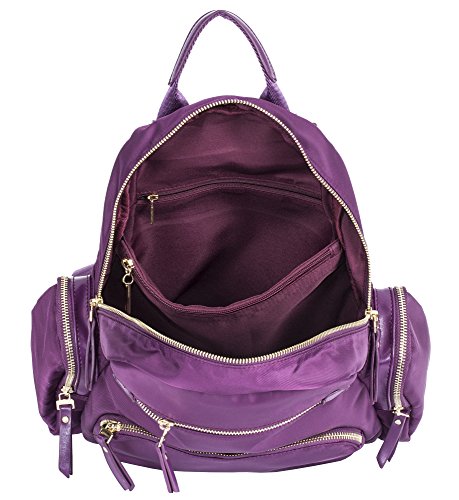 -. Feature : Fabric made designer inspired top zip opening backpack rucksack shoulder bag with small top handle to carry as top handle bag / Two front zip pockets, two side zip pockets with a back zip pocket / Height 35 cm (14"), Top Width 17 cm (6.5"), Bottom Width 28 cm (11"), Depth 10 cm (4"), Weight 600 grams (1.32 pound) / Fully fabric lining inside and stitching is secured with piping, with two open and a back zip pocket on front and back wall of bag with additional slip type zip pocket / Adjustable backstrap and gold tone hardware