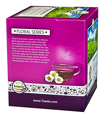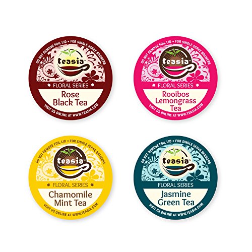-. Feature : KEURIG 2.0 COMPATIBLE!!!! / All Natural Ingredients - No Artificial Additives - Premium Quality / For Keurig K-Cup brewers and other single serve brewers, NOT compatible with Vue or Rivo / This Sampler contains 2 Caffeinated teas and 2 Caffeine-free teas. / Try all four delicious teas in Teasia's Floral Series! Includes our delicate Jasmine Green Tea, aromatic Rose Black Tea, comforting Chamomile Mint Tea, and robust Rooibos Lemongrass Tea.