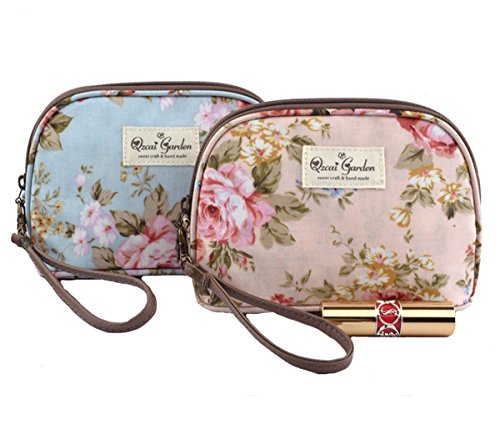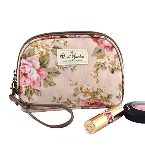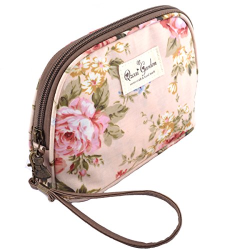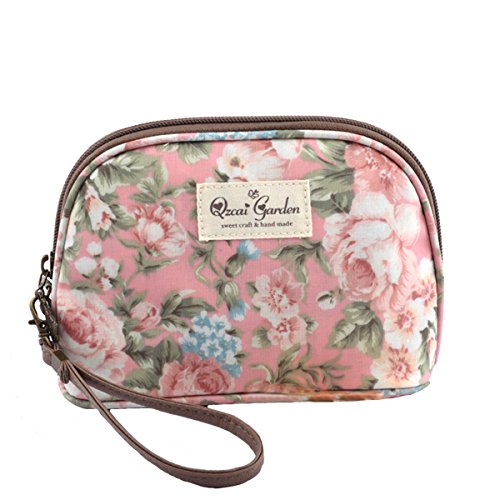 Retro Flowers Waterproof Travel Cosmetic Bags Makeup Pouch Wristlet (Peony Red)