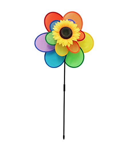 Happy Classy 15" 6 Petal Double Flower Wind Spinner with Sunflower 27" Stake Included