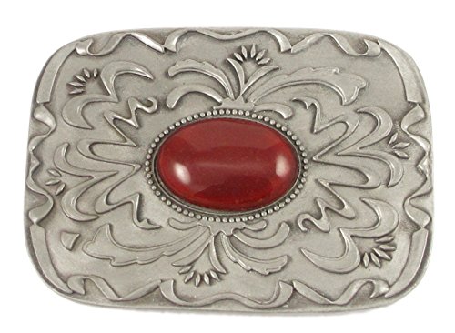 Studio : Siskiyou Publisher : Siskiyou Binding : Apparel Product Description Our scroll and red stone buckle is an update on western style for contemporary tastes. Scroll work is finely sculpted in 3-D detail to accent red stone at center. Width is approximately 2 3/4" x 3 3/4". 0