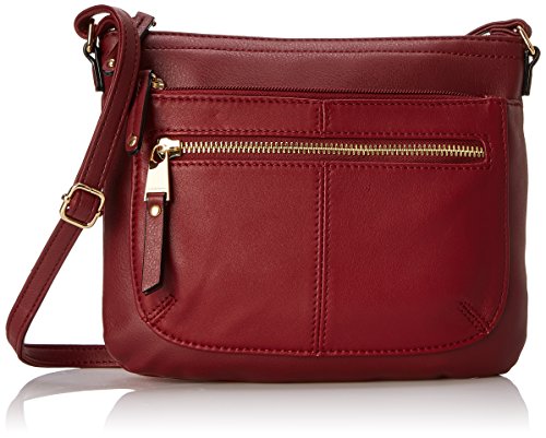 Goldstone hardware gives this crossbody a polished look. Two zipper pockets on the front of the back and a zip top opening for the main compartment. The back feature a zip around organizer with rfid protected credit card slots.
