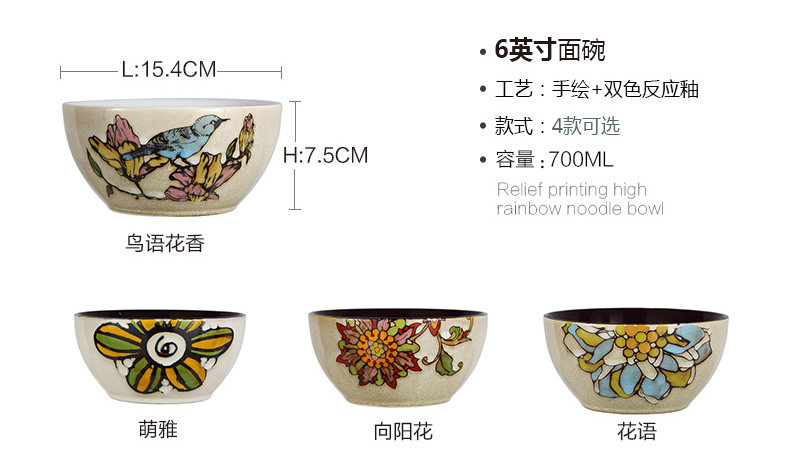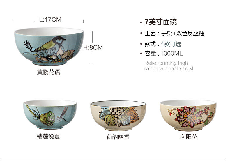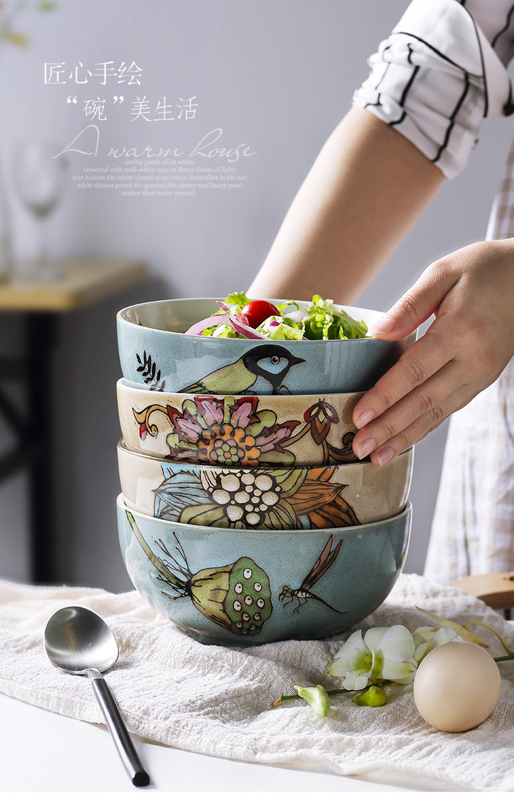 手绘家用碗套装牛肉拉面碗创意大号粉面条汤碗沙拉碗个性陶瓷餐具