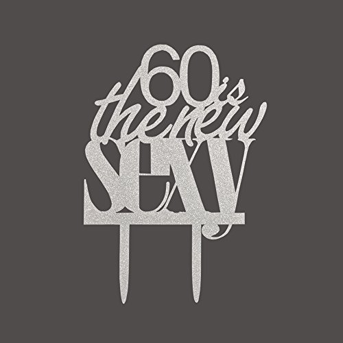 60 Is the New Sexy Cake Topper, Silver Color Arcylic Cake Decors for 60th Birthday Party