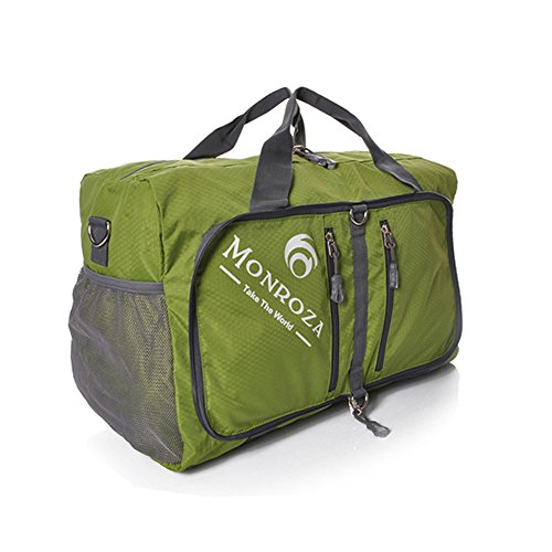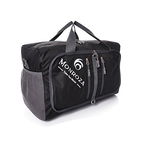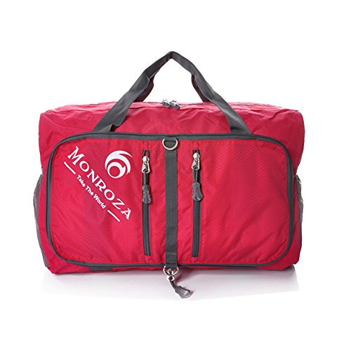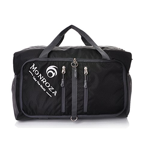 -. Brand : Monroza -. Department : womens -. Feature : ※There are 2 different zippers for this travel bag:double zipper and single zipper,what you get will be double zipper or single zipper / Material:Durable Nylon - High Quality Water Resistant Fabric / Size:(before feld:L45*H29.5*T25CM), (after feld:L22*H20*T2.5CM) / It is a lightweight travle bag,and you could fold it into a small shoulder bag when you don't need to put anything into it. -. ProductGroup : Apparel -. ProductTypeName : LAGE -. Size : L45*H29.5*T25CM -. Title : Monroza Foldable Holiday Carry On Sports Travel Duffel Bags with Shoulder Strap