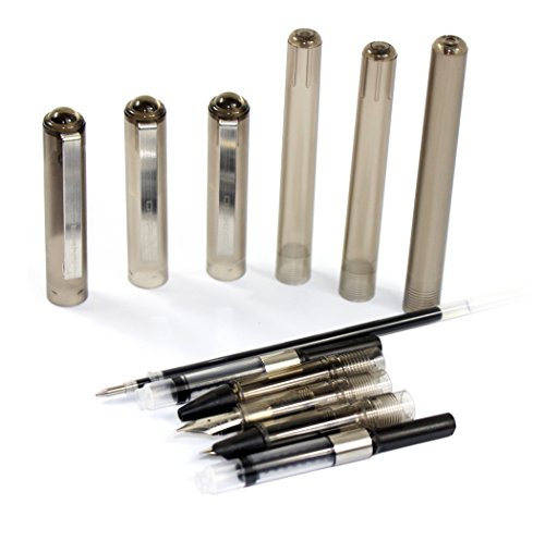 -. Feature : Fountain pen features a stainless steel nib / Material: plastic + Stainless steel. / Package: 3 x pens (with pen box), as picture shown / Capped length: 140mm, diameter: 12mm, each pen weight 11g. / Note: the fountain pen does NOT come with ink, but the rollerball pen come with black ink.