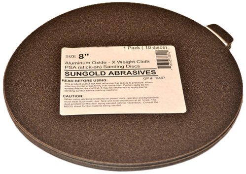 Sungold Abrasives 338088 120 Grit 8-Inch X-Weight Cloth Premium Industrial Aluminum Oxide PSA Stick-On Sanding Discs For Stationary Sanders, 10 Sanding Discs/Pack