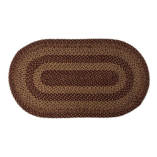 -. Title : VHC Brands Burgundy Tan Jute Rug, Oval 27" x 48"