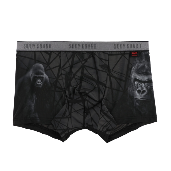 기하학형태의 패턴과 킹콩 실사가 들어간 프린트.