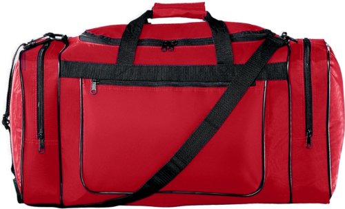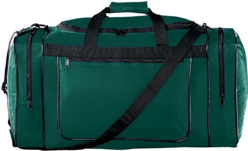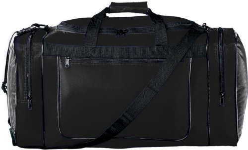 Product Description ZUZIFY Medium Gear Duffel Bag. UO0817 The ultimate gear bag with plenty of pockets for power packing. 420-denier Nylon with PVC coating Zippered main compartment has large U-shaped opening with two zipper pulls Separate zippered compartments at each end Zippered front pocket Black web handles with self-fabric handle wrapper reinforced at stress points Adjustable and detachable matching shoulder strap with black rubber shoulder guard Plastic hardware self-fabric piping Removable inside bottom board Size: 25" x 11" x 11" 0