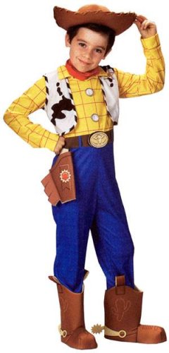 -. Feature : Deluxe Woody costume includes jumpsuit w/ vest & holster, boot covers w/spurs, cowboy hat & bandana. / The Woody Deluxe comes in child sizes X-Small, Small, Medium. / This Woody Deluxe is an officially licensed Toy Story costume.
