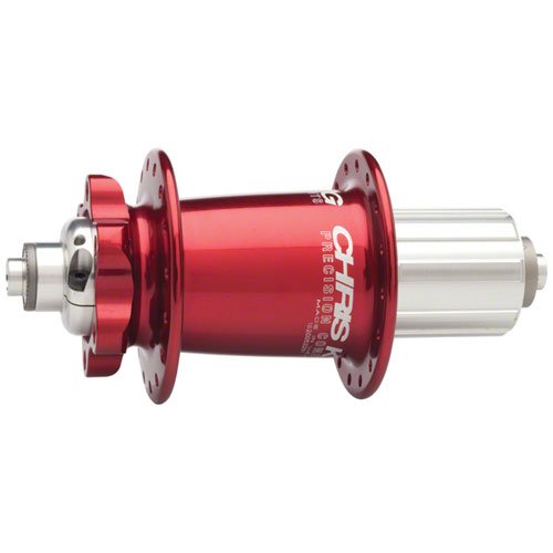 Studio : Chris King Publisher : Chris King Product Description Art. Chris King parts in general, and their hubs in particular, are functional art. With a sexy shape and mirror smooth anodized finish, they're certainly ogle-worthy. And they're just as beautiful on the inside. They have a well deserved reputation for being as strong as they are light weight. Chris King hubs are easy to maintain, disassemble, rebuild, convert, and customize -- you can do it all.Chris King found that designing the ISO disc hub (a.k.a. 6-bolt pattern) caused them to improve their hubs in general. In addition to lightening them in comparison to their older Universal Disc model, they increased the flange diameter, which makes it easier to thread the spokes and wheels can be stiffer due to the slightly shorter spokes. The Chris King ISO Disc Rear Hub is available with 32 or 36 spoke holes and comes in five colors -- Black, Green, Navy, Red, and Silver. It comes equipped for use with a standard Quick Release skewer, but the QR specific inserts can be backed out of the one-piece axle ends if you want to use Chris King's Fun Bolts (not included) for a more secure connection to your frame. It has a 135mm Over Locknut Dimension (OLD). The flange diameter is 57.6mm, and the center to flange measurements are 20.1mm on the right and 33.9mm on the left.