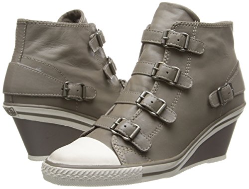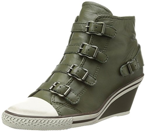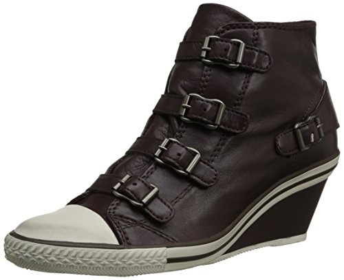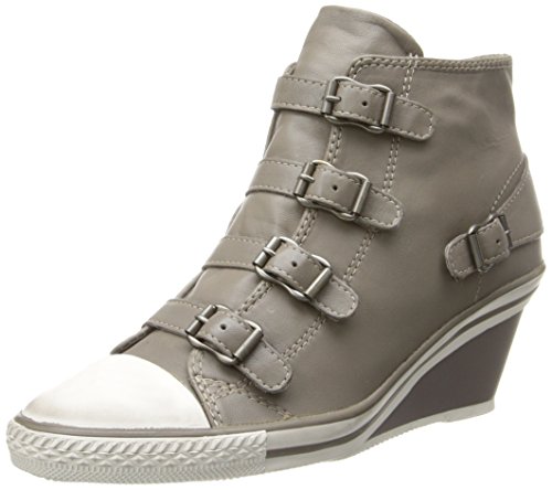Sporty Ash sneakers cut from soft, wrinkled leather. Buckled straps accent the front and curve around the heel, and the wedge heel provides easy lift. Side zip. Dirtied rubber toe cap and sole.Feature