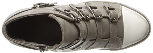 High-top wedge sneaker featuring adjustable buckle straps at vamp and heel