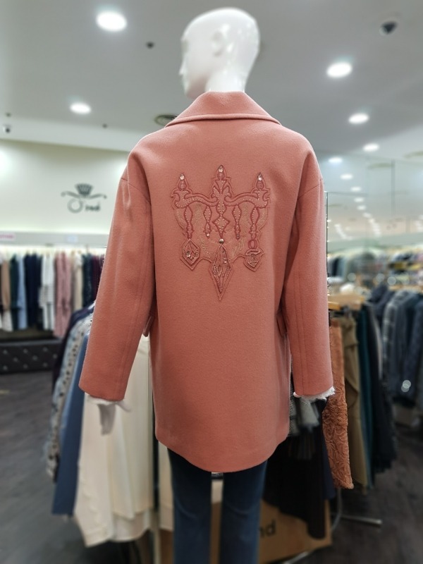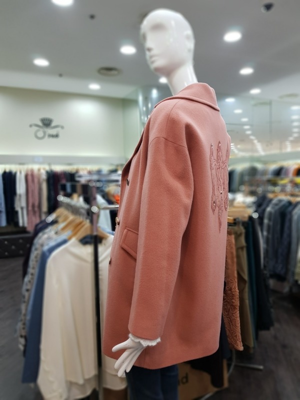 앙고라 혼방 소재로 각기 다른 단추가 달려 포인트 있는 코트로 어깨선이 내려가 있어 편한 착용이 가능하며,뒷면의 비즈와 자수 장식이 고급스러움을 더해줍니다. ?