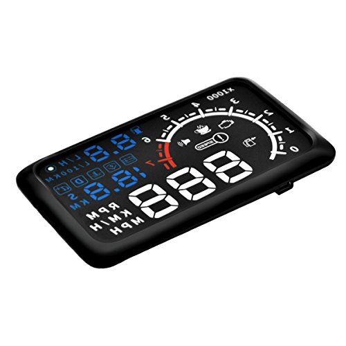 -. Feature : ✔ AUTOMATIC ADAPTATION MODELS: Understand the brand models, with OBD II or EUOBD (OBD) models is in use, choose a common display mode, high speed display mode or the automatic display mode, free switch miles to kilometers, greatly facilitate British steam car dashboard / ✔ AUTOMATICALLY: Automatic switch machine, start with the car, along with the car off, effectively protect the vehicle battery, and retained the manual switch machine, more beneficial to control the HUD, automatic and manual brightness adjustment mode, driving not dazzling / ✔ ALARM TIP: Speed alarm, to shift in time and achieve fuel saving purpose, for the novice also special significance; selection speed single or four alarms, more conducive to driving safety / ✔ DISPLAY: Vehicle speed, engine speed, temperature (voltage / throttle position / ignition advance angle / 100 kilometers acceleration time), instantaneous fuel consumption, average fuel consumption, mileage, sesting that low oil volume, rest prompt, engine failures, also shows / ✔ DATA READING: 5.5 Inches display area, more conducive to data reading