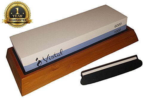 Premium Knife Sharpening Stone 2 Sided 1000/6000 Grit Waterstone | Best for Kitchen and Outdoor/Survival Knives | Non-Slip Bamboo Base & Angle Guide