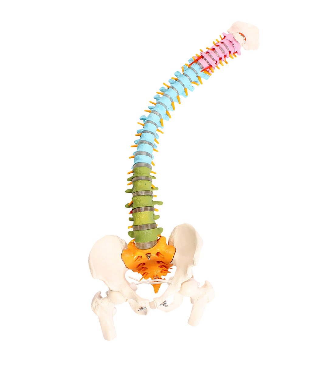 Cervical spine, thoracic vertebra, lumbar spine, sacrum / coccyx are color-coded