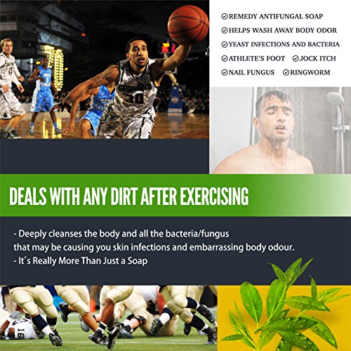 100% Natural Anti-Fungal Soap with Tea Tree Oil- Helps with Body Odor, Fungal and Bacterial Problems on the Skin: Acne, Athlete’s Foot, Jock Itch, Nail...