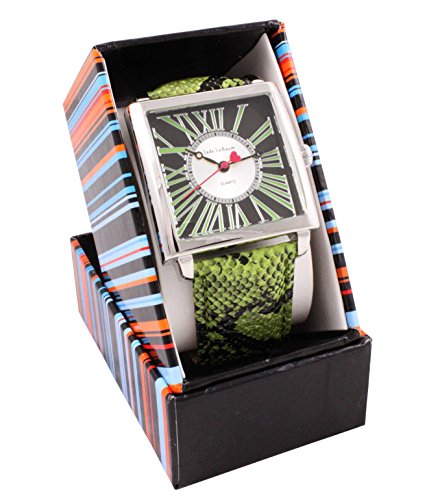 -. Title : Womens Green Square Face Watch Black Dial Roman Numerals Leather Band Reloj Jade LeBaum - JB202874G