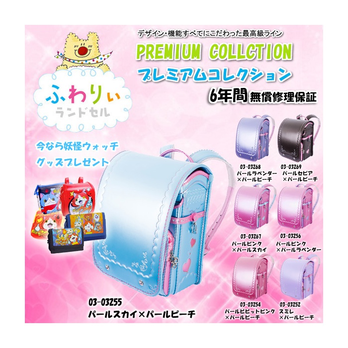2017판매 모델☆【란도셀 소녀 클라리노】후와리 프리미엄 란도셀【요괴 워치 토트 백 부착♪】