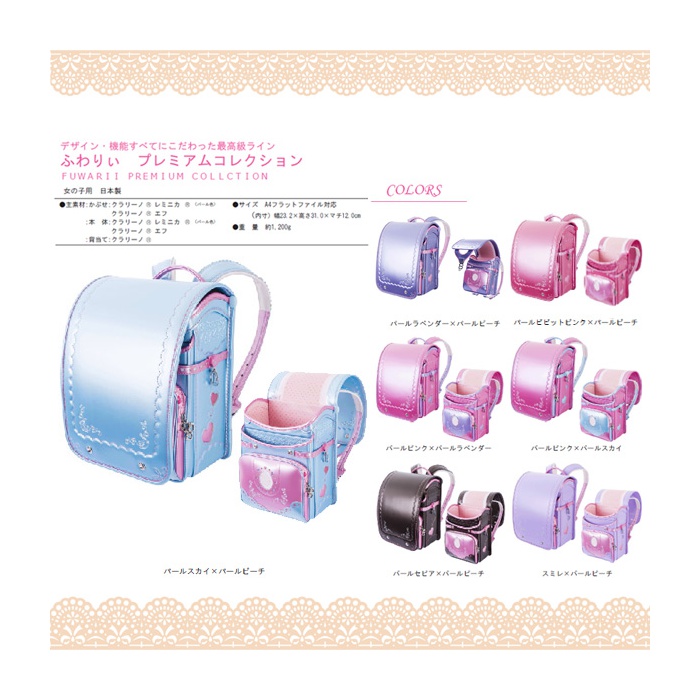 사뿐히 # 프리미엄 콜렉션 란도세루(초등학생이 어깨에 매는 가방) 소녀 일본제 색 펄 스카이/펄 피치 사이즈 (약)높이 31×옆 23.2×마치(깊이,폭) 12cm,중량1200g