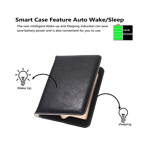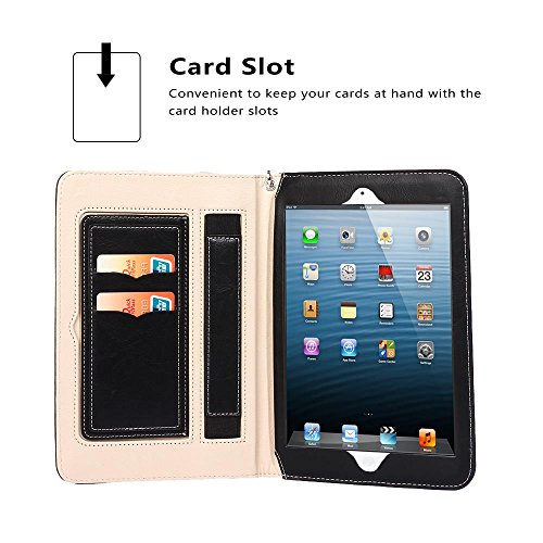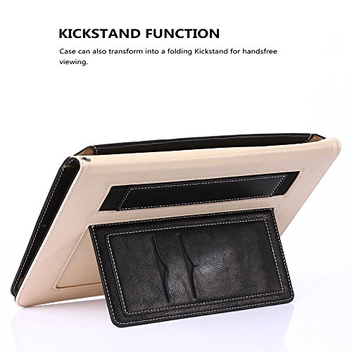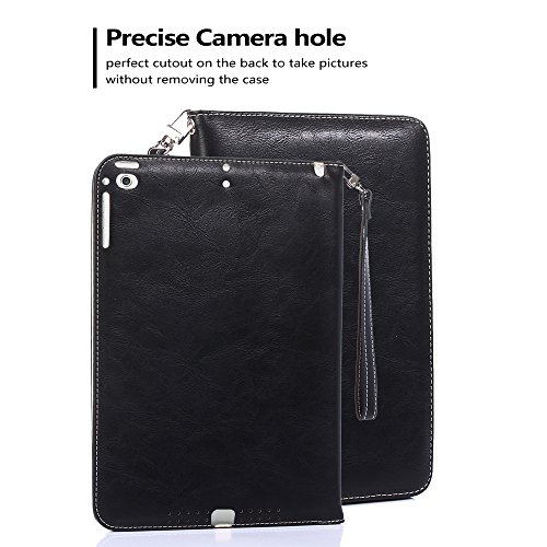 iPad Air Case, TabPow All-in-One - Premium PU Leather Smart Case Cover With Card Slots, Kickstand, Elastic Hand Strap Grip For iPad Air (2013 Edition) - Black