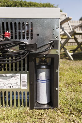 Absorberkühlbox für 12 V, 230 V und Gas, Kühlleistung bis 25 °C unter Umgebungstemperatur, Piezo-Zündung, thermostatische Regelung bei 230 V-Betrieb, 3-Stufen-Flammenregulierung bei Gasbetrieb, Stehhöhe für 1,5- und 2-l-Flaschen, integr. Tragegriffe, Eiswürfelbereiter, Gehäuse aus beschichtetem Stahlblech, Gewicht: 16 kg Energieverbrauch ist 1,6 kWh/Jahr. Nutzinhalt des Kühlfachs ist 40 l. Breite ist 500 mm. Höhe ist 441 mm. Tiefe ist 508 mm Gas/12V/230V,40l Dometic WAECO Kühlbox Gas/12V/230V,40l RC 1205 GC5999024853578Feature