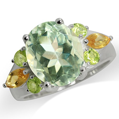 -. Title : 4.32ct. Natural Green Amethyst, Peridot & Citrine 925 Sterling Silver Cocktail Ring