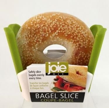 • SIDE GUARDS: The slanted edges keep the bagel centered at it cuts through the middle.