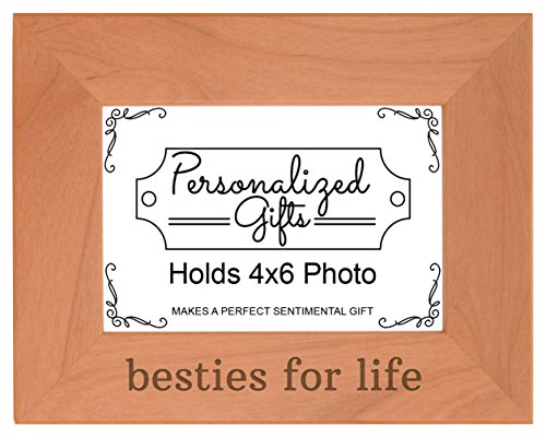 Besties for Life Best Friends Forever Gift Natural Wood Engraved 4x6 Landscape Picture Frame Wood