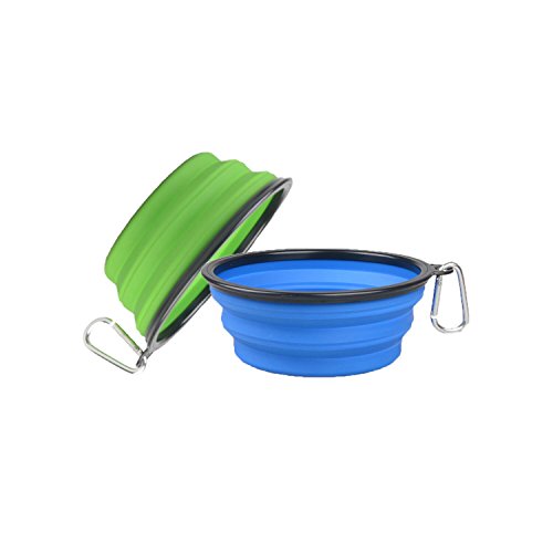 Studio : Bend River Publisher : Bend River Binding : Misc. Product Description Product Description: Bend River collapsible dog bowls are great for travel, camping, hiking and more. Food grade silicone ensure completely safe for your pet. Mixed colors in each pack and every bowl comes with a carabiner. Make travelling with your pets an enjoyable experience! Specifications Details: Capacity: Each bowl holds up to 32 fluid ounces of water or 4 cups of dog food Color: Blue Green Material: FOOD GRADE SILICONE Top Diameter: 7.0 inch Bottom Diameter: 5.0 inch Max Height: 2.8 inch Mix Height: 0.5 inch Single Weight: 4.2 oz Package Content: 2 bowls and 2 carabiners 0