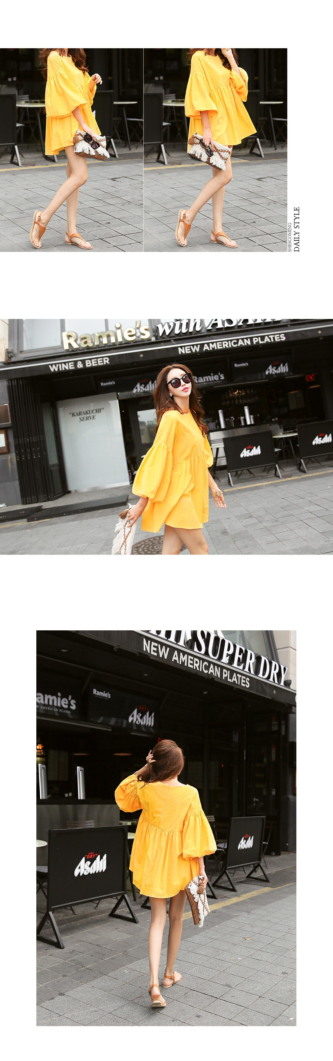 퍼프소매 디자인으로 러블리한 무드를