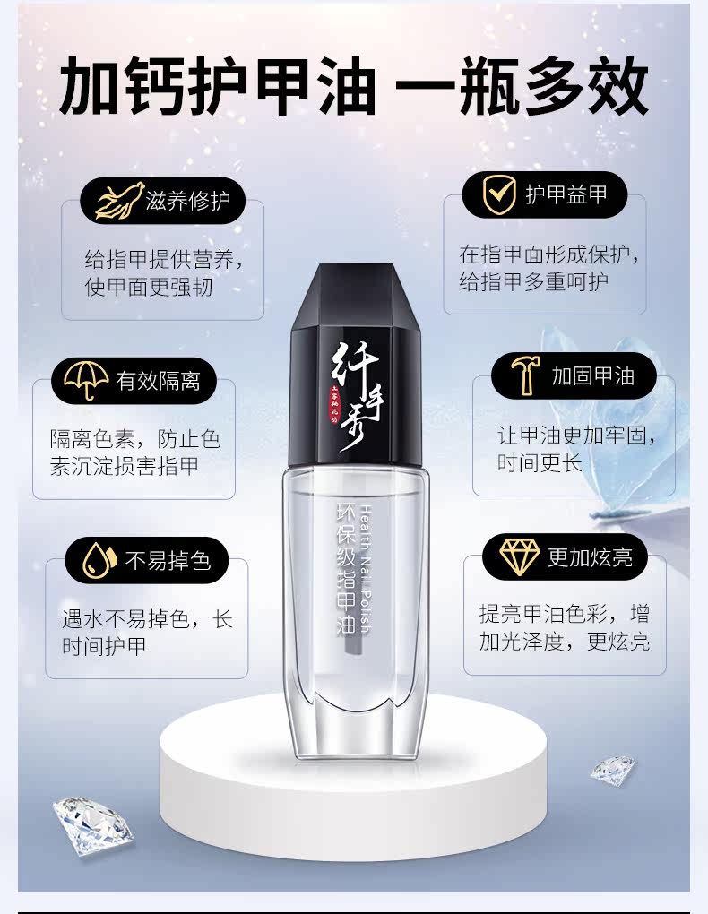【纤手秀】加钙护甲油亮油底油 透明指甲油健康无毒快干持久美甲