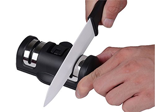 Wheel sharpening creates a long lasting and sharp edge, Suction base for safety, Comfortable and Easy to use