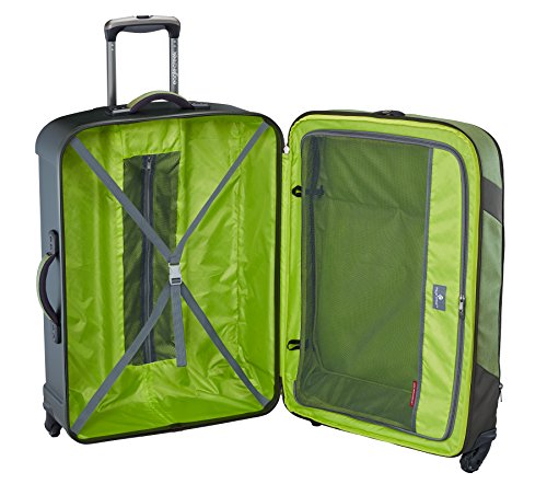 Studio : Eagle Creek Publisher : Eagle Creek Binding : Apparel Product Description This maximum-capacity 4 wheel spinner bag boasts of four all wheel drive wheels for effortless mobility with a sleek ultra-light, ultra-durable bayer polycarbonate shell. Add to that #10 lockable puncture-resistant zippers for security and coat keeper to secure outerwear to the top of the bag. 0