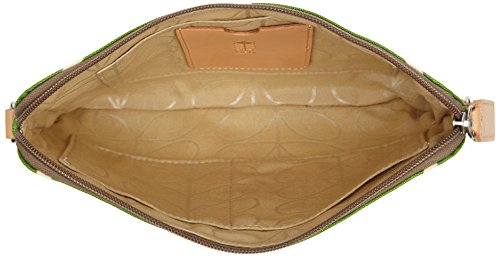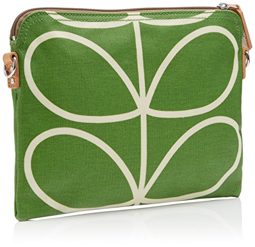 Studio : Orla Kiely Publisher : Orla Kiely Binding : Apparel Product Description Matte laminated travel pouch in the classic 'linear stem' print with leather trims and double sided webbing long strap and contrast coloured zip closure. Inside details include sand linear stem jacquard lining small leather logo card holder pocket, small patch pocket perfect for a passport and mobile pockets. Silver coloured hardware. Includes a detachable strap that allows the bag to be worn as a shoulder bag or across the body (length 112Cm) or detached and used as a pouch or clutch. 0