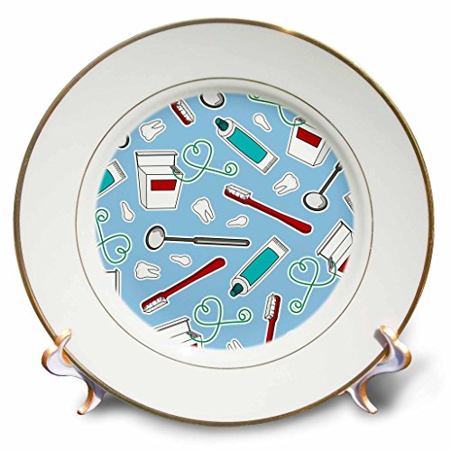 3dRose cp_165818_1 Cute Dentist Dental Hygienist Print Blue Porcelain Plate, 8"