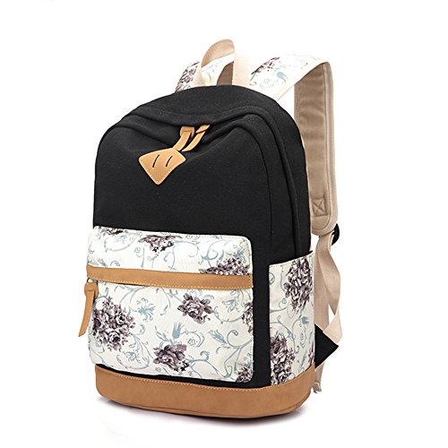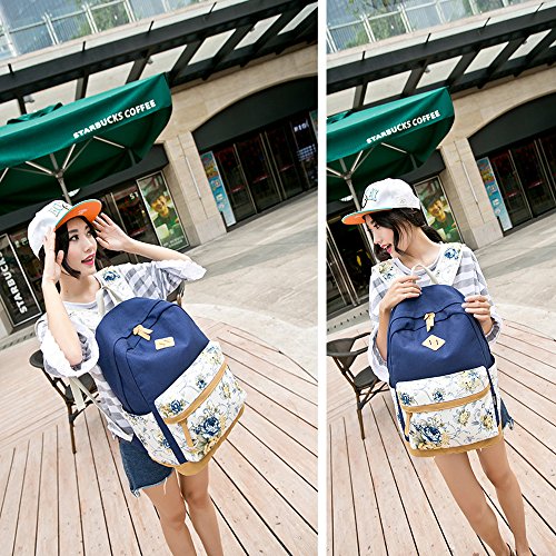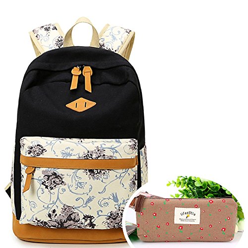 -. Title : SymbolLife Casual Style Lightweight Canvas Laptop Bag/ Shoulder Bag/ Bookbag/ School Backpack with Cross-body Bag and Purse/Pen Bag with Embroidery Design