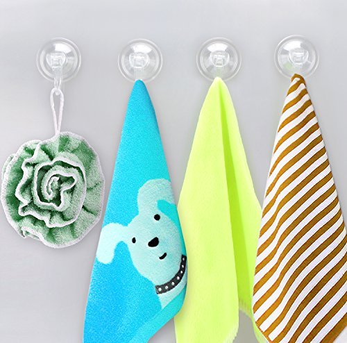 Hooks Hangers, Elktry Bath Towel Hooks, Transparent Suction Cup Hooks, Wall Suction Cups Holder with Ultra Strong Hook Hangers Ideal for Home Storage(4 Pack)