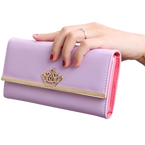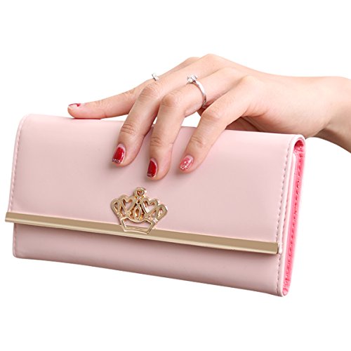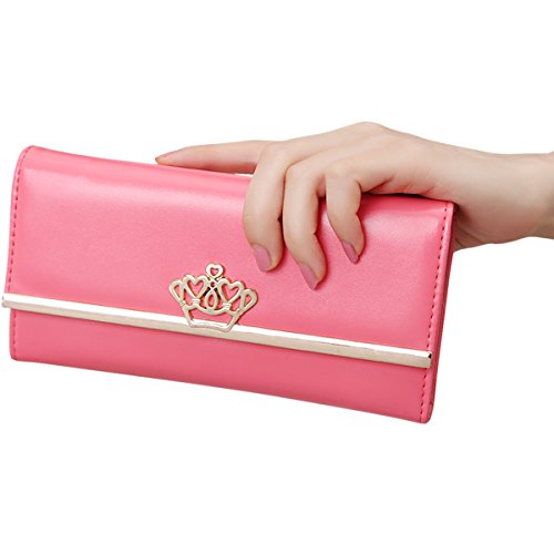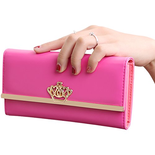 Jastore® Lady Women Crown Clutch Leather Long Wallet Card Holder Purse (Rose)