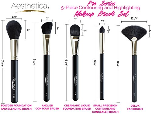 Weighted with reinforced steel rods for maximum control, the Aesthetica 5-Piece Professional Contour Brush Set helps expertly apply all types of makeup, from loose or pressed powders to cream or liquid foundations.