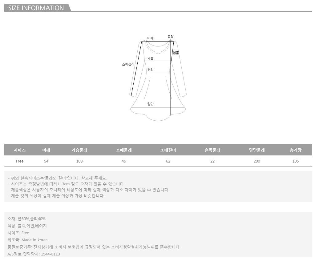 | 특이 사항 | 배송, 변경, 반품 환불에 대한 문의는 위 연락처로 문의 주세요. | ||