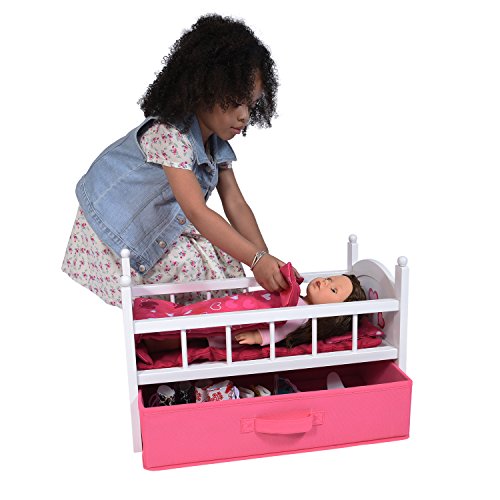 -. Title : Wooden Doll Crib with Storage Drawer Fits 18 Inch Dolls