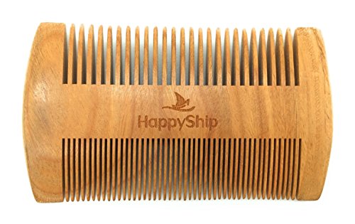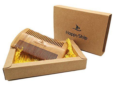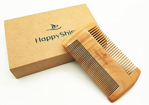 HappyShip Dual Action Beard Comb for Men - Wooden Natural Sandalwood Antistatic No Static Beard Comb - 100% Made of Whole Sandalwood Narrow/Wide...